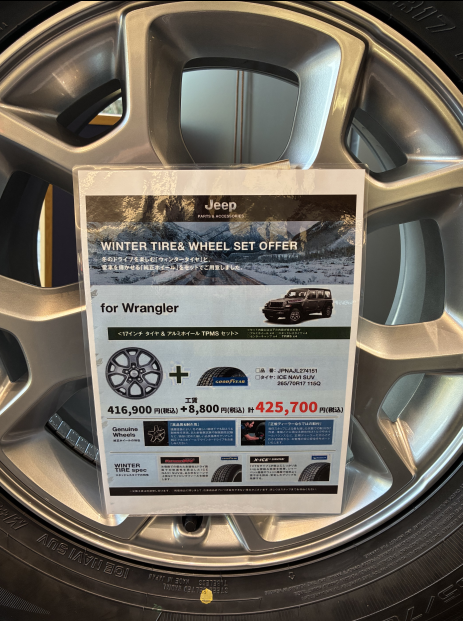 ジープ横浜みなとみらいでも、スタッドレスタイヤを実際に店舗に展示中です。