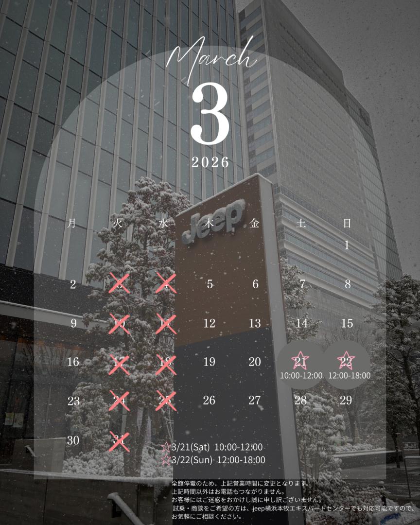 いつもジープ横浜みなとみらいをご利用いただきありがとうございます。