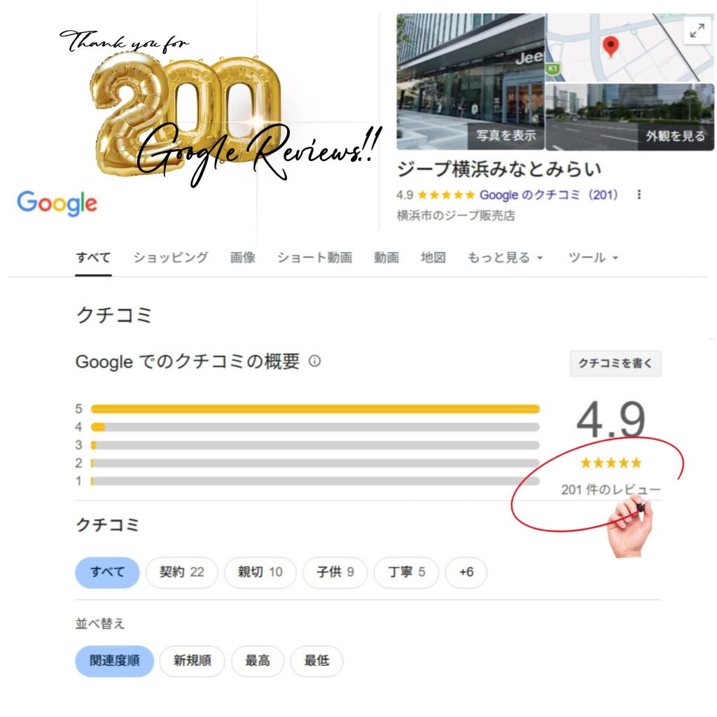 ジープ横浜みなとみらいのGoogle口コミが200件を突破しました!