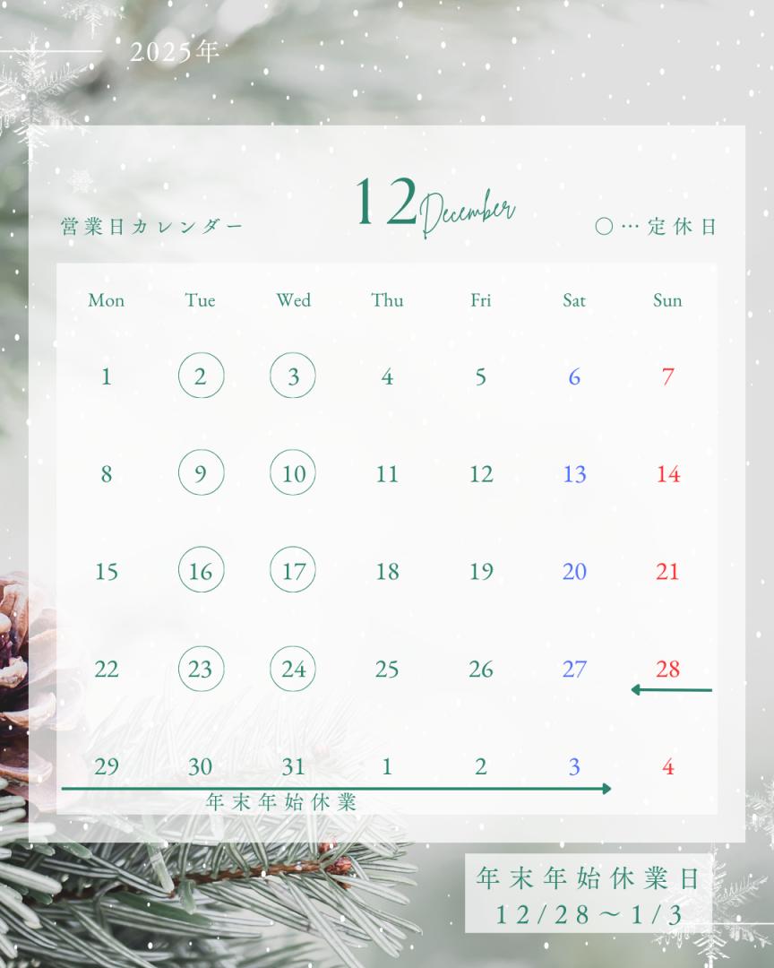 🎄12月営業日/年末年始休業のご案内🎄